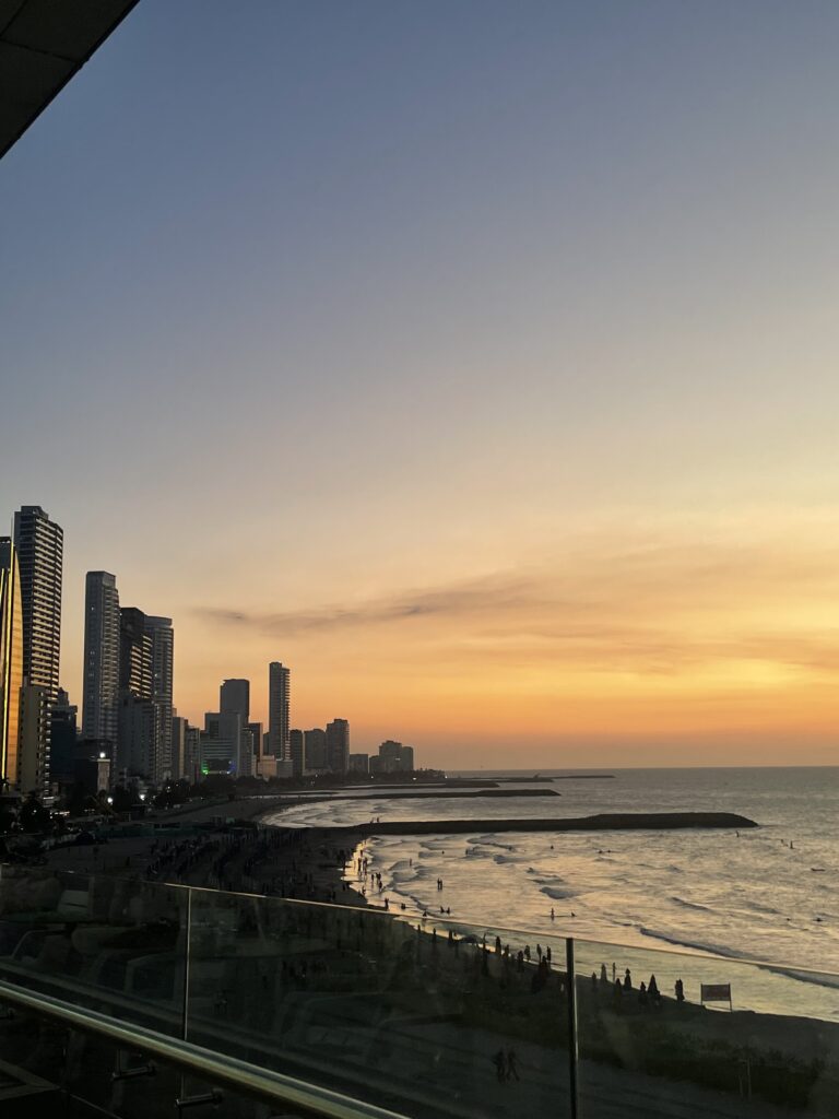 Am Tag darauf ging unsere Reise weiter nach Cartagena, die zweite wichtige Stadt der Küste. Dort haben wir etwas über eine Woche, in einem kleinen Hostal gewohnt, was nur unmittelbar vom Strand entfernt war. Das Hostal befand sich in einem etwas ärmeren, gefährlicheren Teil der Stadt, (was wir vorher natürlich nicht wussten) was uns vor allem immer wieder auf dem Weg zum Strand bewusst wurde. Man ging nämlich vom Strand mit allen Touris vorbei an riesigen Hochhäusern, mit Pool, Luxushotels etc. bis zu einer kleinen Brücke, von der nur noch wir die einzigen Touristen waren, die über einen kleinen Fluss führte. Der Fluss war eigentlich nur Müll der durch den Schlamm süffte. Auf der anderen Seite des Flusses waren dann nur noch kleine Häuser, Baracken und nichts mehr mit schick schick. Ein bisschen so wie ein Musterbild aus dem Geografiebuch. An dem Punkt ist es mir total wichtig zu erwähnen, wie froh ich bin, genau auch diesen Teil der Stadt kennenzulernen, da wir eben keinen schicki micki Urlaub machen wollten, sondern reisen wollten und das möglichst realitätsgetreu. Denn das Zentrum von Cartagena ist wirklich sehr luxuriös, sehr teuer und sicher, was natürlich total schön auch ist, aber halt auch nur einen Teil der Stadt repräsentiert. Naja, genug davon. Das Zentrum war nämlich wirklich auch echt schön! Die Altstadt ist voll von pompösen modernen Häuser-Konstrukten, mit vielen Balkons gefüllt mit farbenfrohen Blümchen und kleinen süßen Gassen, die bunt angemalt sind. Überall hängen Bilder, über einem Girlanden und aus jeder Ecke kommt Musik. Man begegnet durchgehend Straßenrappern, die einem mit einem Freestyle begleiten. Dazu trifft man auch noch Touris aus aller Welt, vor allem an anderen Deutschen hat es nicht gefehlt.