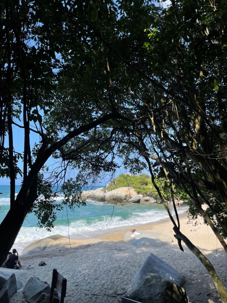 Nach Santa Marta stand für uns der Tayrona Park auf dem Plan. Der Tayrona Park ist ein riesiger Nationalpark entlang der Küste und sehr bekannt für seine Diversität an Tieren und Pflanzen, wie auch einzigartige Strände. Wir hatten uns ein kleine Hostal gegenüber des Parks gebucht. Leider gab es einige Missverständnisse bei der Buchung und den letztendlichen Preisen, was sich für uns als absoluter Jackpot herausstellte, da wir letztendlich alleine in einem 4 Sterne Hotel, mit Pool und Frühstück inklusive für nur 2,90 Euro die Nacht waren. Der Fehler lag nicht bei uns, sondern beim Hotel, aber wir haben es in vollsten Zügen genossen. Nach den ganzen Städten war es ein absoluter Traum irgendwo mitten in der Natur zu sein. Hinter unserer Unterkunft floss ein Fluss lang, indem wir uns, wie kleine Kinder, mit zahlreichen Staudämmen beglückt haben, uns vom Fluss treiben lassen haben und auf der ein oder anderen Liane geschaukelt sind. Ich glaube, das war einer der schönsten Tage überhaupt. Am zweiten Tag dort, ging es für uns dann in den Tayrona Park. Dadurch, dass es ein sehr touristischer Ort ist, muss man Eintritt zahlen, wie auch ein wenig für “Versicherung” im Fall der Fälle. Wir hatten sehr Glück, denn wir Freiwilligen besitzen alle eine “Cedula de Extranjería” (Ausländerausweis), der beweist, dass wir aktuell in Kolumbien resident sind, und mussten somit nur halb so viel zahlen, wie die ganzen anderen Touris. Man haben wir uns darüber gefreut. Leider sind wir Pappnasen ganz schön spät unterwegs gewesen, weshalb wir, anstatt der langen Wanderstrecke, zum beliebtesten Strand dort, die kurze Strecke genommen haben. Der Strand dort war aber auch echt beeindruckend. Die Wellen, das Wasser, der Blick, die gesamte Stimmung waren wie aus einem Fantasyfilm. Total surreal und dennoch wunderschön. Am Strand haben wir in den Bäumen, unter denen wir lagen, kleine Affen getroffen. Im echten Leben, in der freien Natur, zum greifen nah. Surreal. Und im Wasser einen riesigen bunten Schwertfisch. Surreal. Alles wie in einem Traum, nur in echt. Total abgefahren. Mein absolutes Highlight der ganzen Reise.
