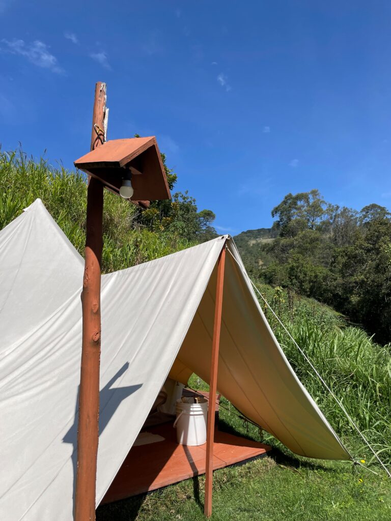 Mit Lasse ging das gleiche Touri-Programm nochmal los, nur diesmal sind wir mehr zu zweit unterwegs gewesen, da mein Gastvater viele Terminchen hatte und uns nicht immer kutschieren konnte, bzw. wir das selbstverständlich nicht in Anspruch nehmen wollten. Wir haben dennoch jede Menge gesehen und gemacht; zwei Tage haben wir in einem Glamping (modernes Camping) auf einer Finca von Freunden meiner Gastfamilie verbracht, irgendwo verloren in den Bergen. Es ist ein unfassbarer Ort dort. Der Blick aus dem Zelt ist unbeschreiblich, das Panorama, die Ruhe. Das Gebiet bepflanzen sie mit allen möglichen Frucht- und Gemüsesorten (wie auch der ein oder andere Marijuana Pflanze aber pssst) und kochen und backen ausschließlich mit ihren angebauten Lebensmitteln. Wir haben gemeinsam gepflanzt und geerntet und sind durch die kleinen Wälder gewandert. Hier und da wurden Erdbeeren, Mini-Bananen und Brombeeren gepflückt und alles probiert. Lasse war auf Wolke 7.